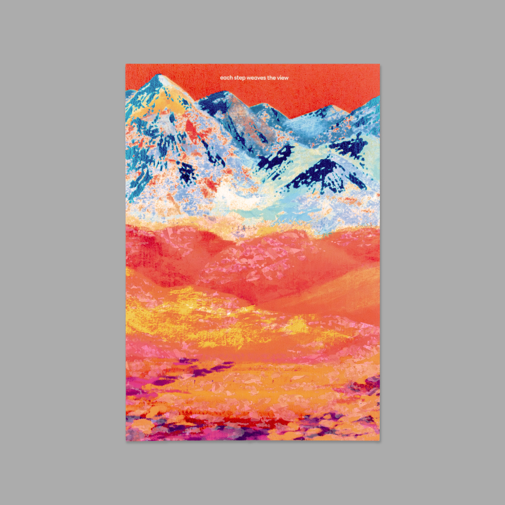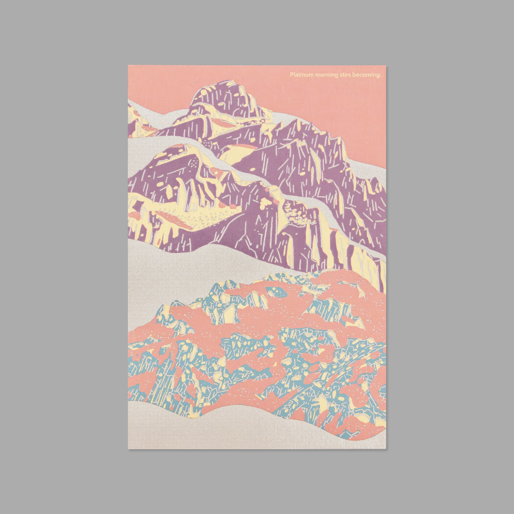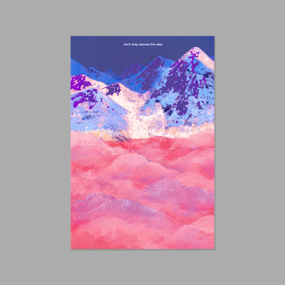 3種を並べて山が連なる、雲海を描いたポストカードです。