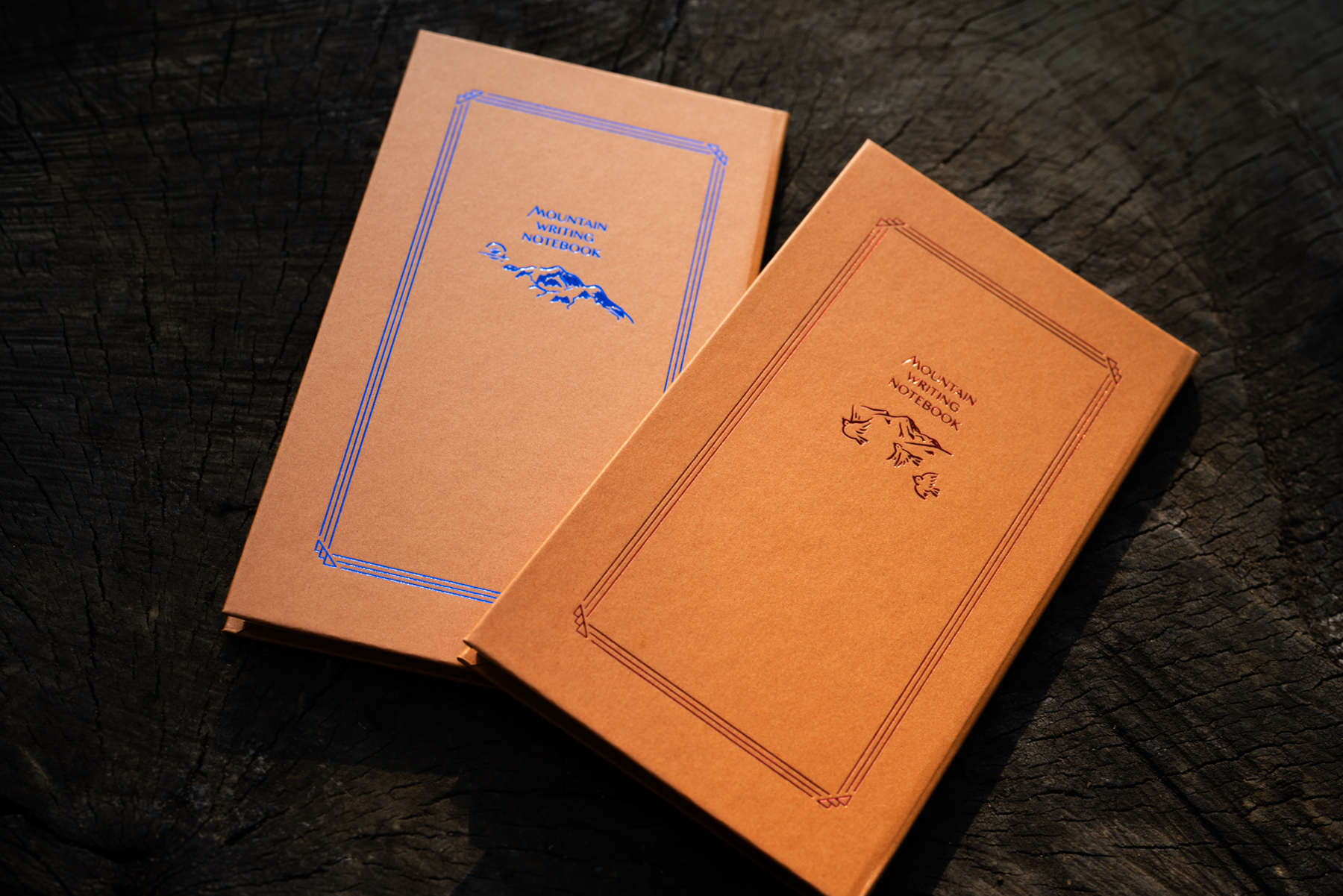 表紙にラフタッチの山のイラストを箔押しし、本文には防水加工を施した紙を採用。山で感じたことを綴るのに最適です。「原稿罫タイプ」と「縦罫タイプ」をご用意。(2種類・各税込1,540円)